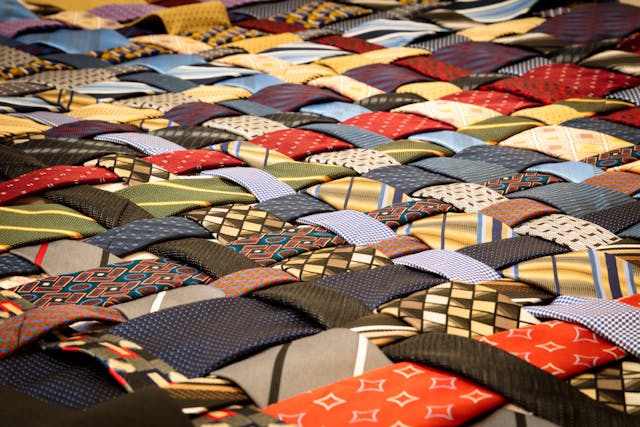 • Materiál kravaty může ovlivnit celkový vzhled a styl, například hedvábí působí elegantněji než bavlna.